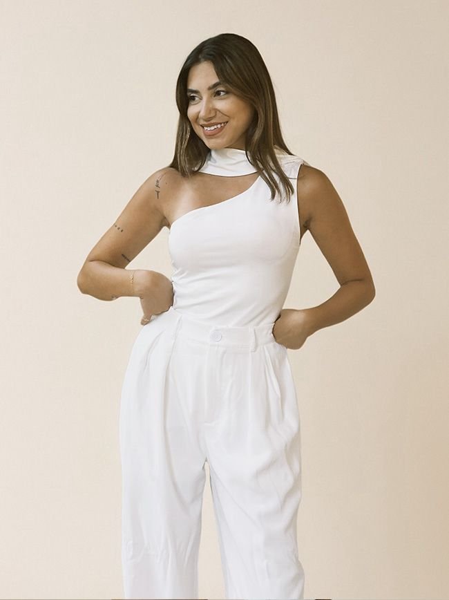 Experience elegance and comfort in one. Made from soft, stretchy lycra with a thick, non-see-through texture, this one shoulder padded body features a unique twist detail at the neck for a chic, sculpted look. Its built-in bra offers natural lift and support, while the string-shaped bottom ensures a seamless, flattering fit under any outfit.